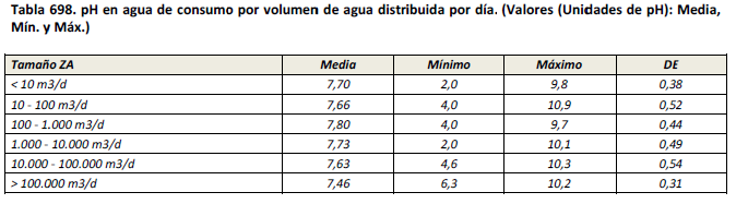 El intervalo permitido de pH en las aguas de consumo es de 6.5 – 9.5 unidades de pH.