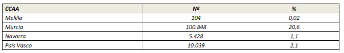 El 21% de las determinaciones de este parámetro han sido notificadas por Murcia, seguida de Madrid con el 17%.