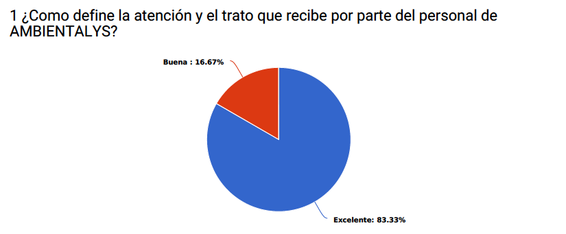 En Ambientalys, nuestra misión es proporcionar un servicio excepcional a nuestros clientes, y recientemente llevamos a cabo la encuesta de satisfacción anual para medir nuestra eficacia en este aspecto. Es por ello que, nos complace anunciar que el 83,3% de nuestros clientes valoró nuestro servicio de atención al cliente como excelente.