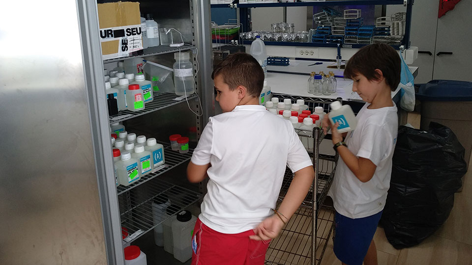 Contamos con la visita de Pedro, Ignacio y Nando, los tres hijos de nuestro compañero Fernando, además del hijo de nuestra Directora Técnica Ana Rallo, Matías, y el de nuestro director Enrique, que trajo a su hijo Màxim. Algunos de ellos, incluso, colaboraron en todo el proceso, desde la preparación del material hasta la toma de muestras y la recepción en el laboratorio.