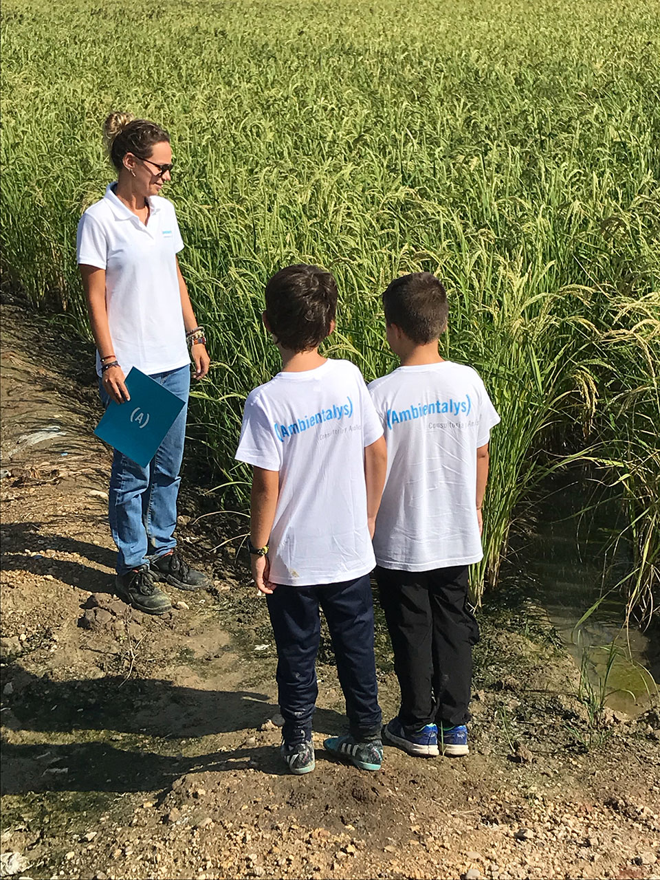 La altura del arroz, en comparación con las primeras salidas del proyecto, ya era considerable. La gama cromática del paisaje se adapta a la estación, y ya comienzan a verse en el entorno los tonos dorados, señal de que el arroz comienza a estar listo.