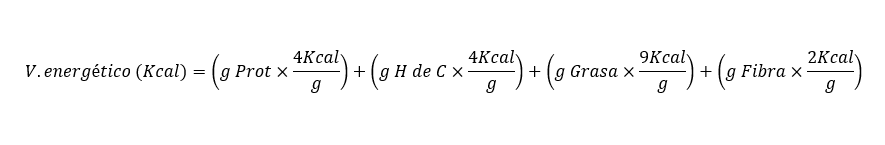 - Valor calórico o energético (Kcal) referido a 100 g de producto