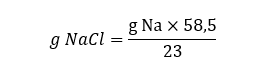 En la información nutricional obligatoria ya no se puede indicar el contenido en sodio del alimento, sino que se deberá declarar la sal o cloruro de sodio. La determinación del contenido de sodio en el alimento es necesaria para poder calcular el contenido de sal (aunque éste también se puede determinar analíticamente a partir del contenido de cloruros) ya que se calcula a partir de los pesos atómicos del sodio y el cloro de acuerdo a la fórmula: